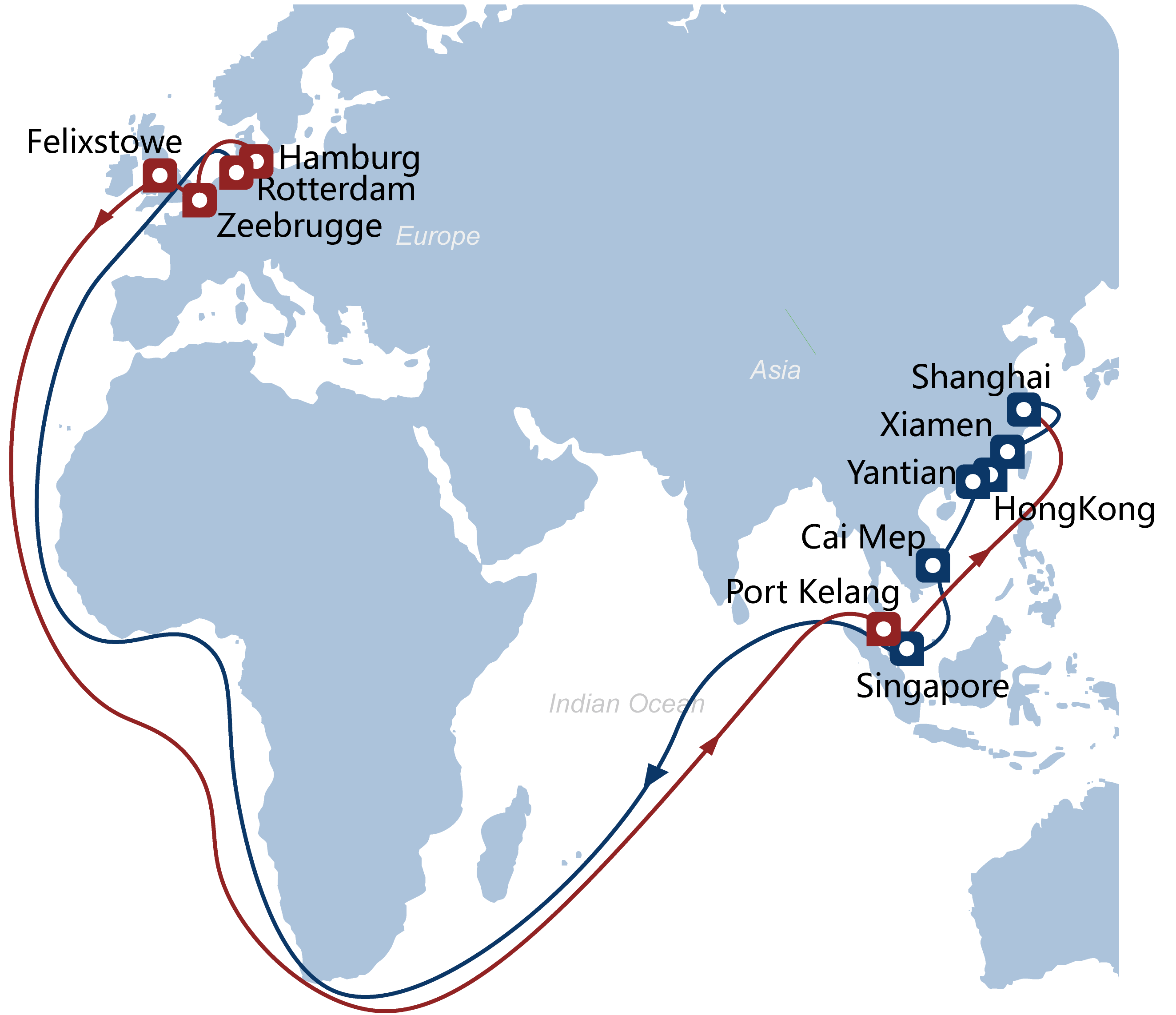 Asia-North Europe 1 Asia-North Europe 2 Asia-North Europe 3 Asia-North Europe 4 Asia-North Europe 5 Asia-North Europe 6 Asia-North Europe 7 North Europe North Africa Mediterranean Service North Europe North Africa Mediterranean Service India/Middle East-North Europe Europe Pakistan India Consortium 1 Europe Pakistan India Consortium 2 Europe Pakistan India Consortium 3 Atlantic North East Coast Service Atlantic South East Coast Service Atlantic Mexico/Gulf Coast Service Atlantic West Coast Service(Non-OA) Gateway Express 1 Gateway Express 2 Latin America/Africa-ESE2 Latin America/Africa-EWX