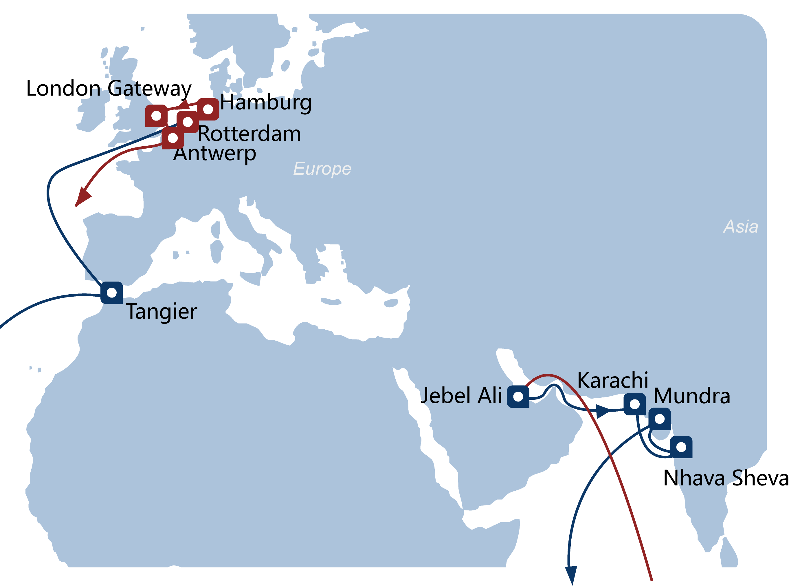 Asia-North Europe 1 Asia-North Europe 2 Asia-North Europe 3 Asia-North Europe 4 Asia-North Europe 5 Asia-North Europe 6 Asia-North Europe 7 North Europe North Africa Mediterranean Service North Europe North Africa Mediterranean Service India/Middle East-North Europe Europe Pakistan India Consortium 1 Europe Pakistan India Consortium 2 Europe Pakistan India Consortium 3 Atlantic North East Coast Service Atlantic South East Coast Service Atlantic Mexico/Gulf Coast Service Atlantic West Coast Service(Non-OA) Gateway Express 1 Gateway Express 2 Latin America/Africa-ESE2 Latin America/Africa-EWX